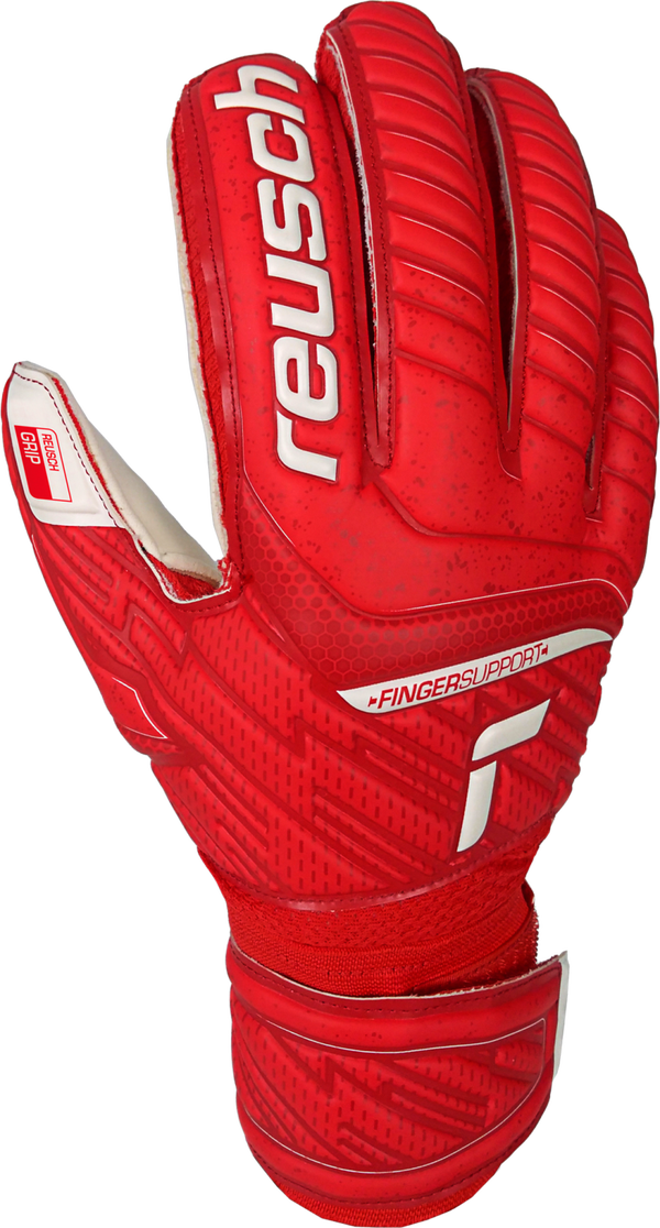 Attrakt Grip Finger Support features The Reusch Grip latex, a completely new development that builds the base for all palm foams used in our collection. It features increased grip and good abrasion resistance. Reliable prevention from finger injuries is guaranteed thanks to the Finger Support Protection system on all five fingers. This model is available in the main blue colorway.