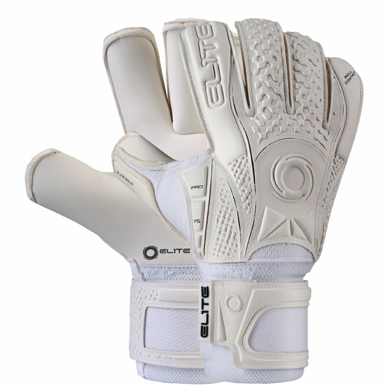 Elite Sport goalkeeper gloves Solo. Palm Cut: Roll finger cut, with double wrapped thumb. Backhand: 4 mm durable GS latex + 4 mm reinforced backing foam on the Shock Zone + Air Ventilation Management AVM fabric. Finger Support: 4 removable finger spines for extra finger support. Wrist Closure: 10 cm wide elastic wristband and 6-line stretch strap.
