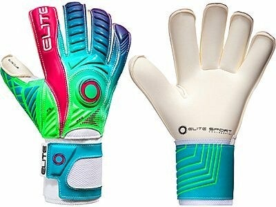 Elite Sport goalkeeper gloves Club. Palm Cut: Classic roll cut with wrapped thumb. Curved finger surface. Backhand: 4 mm PS latex to increase the durability of the backhand + 5 mm reinforced backing foam on the Shock Zone + Air Ventilation Management AVM fabric. Finger Support: 5 removable finger spines for extra finger support. Wrist Closure: 10 cm wide elastic wristband and 360 degree 9 cm wide latex wrist strap.