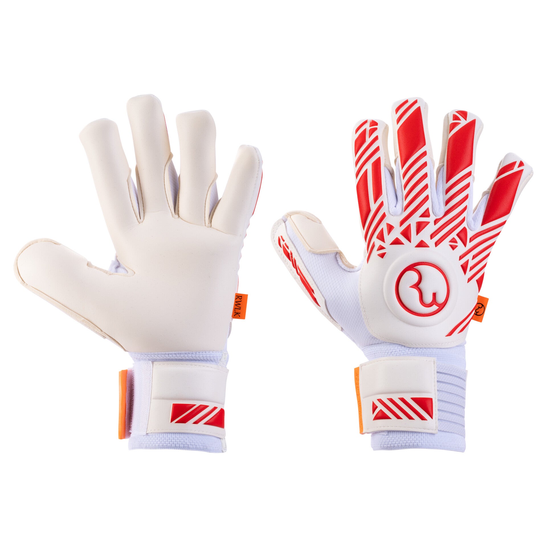 Clyde One Touch Red/White. Negative sewing for better fitting on the fingers, polyester mesh body white, flexible German latex upper hand. Polyester mesh white between the fingers. Extra soft 3,5 mm foam with 3 mm padding and welding. With half extra thumb part with thumb reinforcement positive sewing. 9cm wristband, strap 5,5cm wide with elastic band insert, silicone belt end.